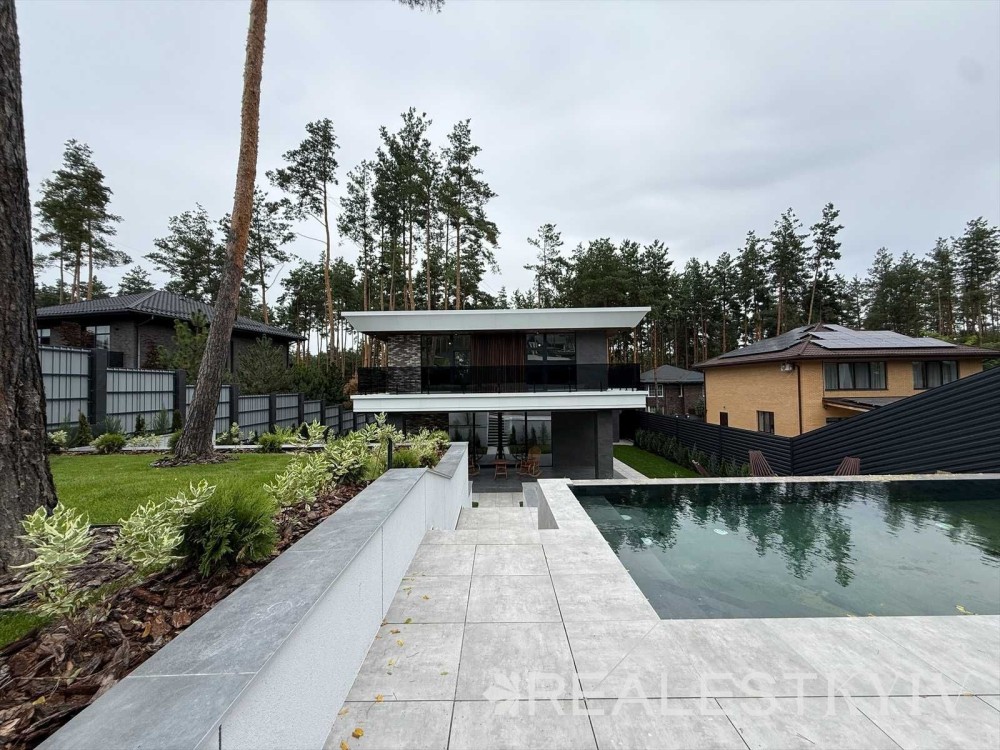 Продається новий будинок серед соснового лісу в с. Ходосівка з розкішною SPA-зоною. У будинку на 4 спальні виконано всі чорнові роботи, розведено електрику, сантехніку та облаштовано теплу підлогу. На просторій ділянці серед високих сосен органічно розмістилися крита тераса, Infinity басейн, водоспад, навіс на 4 авто та вишукана вхідна група з неймовірною нічною підсвіткою центрального в`їзду. Ідеальне поєднання сучасної архітектури, функціонального планування та природи.
