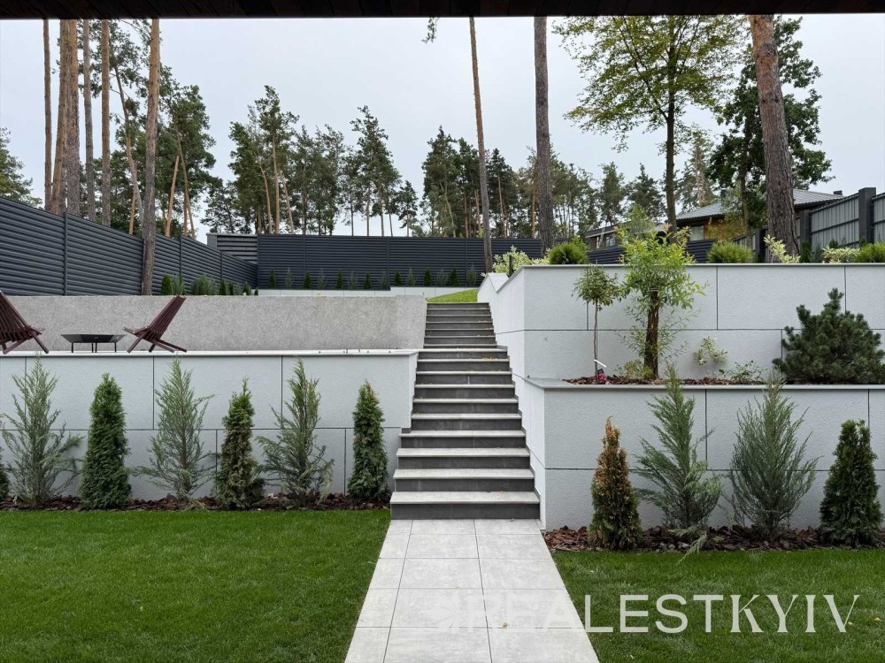 Виконано озеленення, декоративні насадження, рулонний газон та автополив.