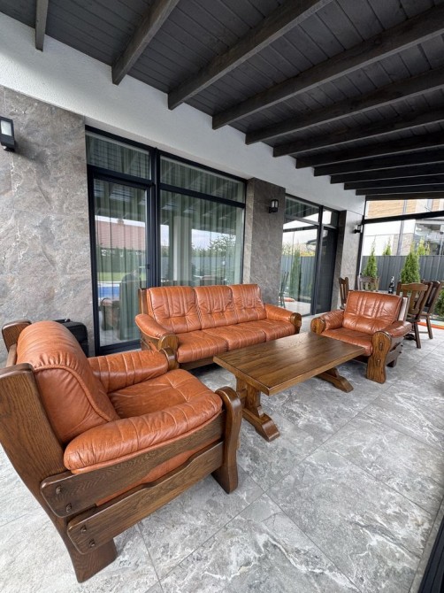 Терміновий продаж 2-о поверхового просторого і якісно-збудованого за індивідуальним архітектурним проектом, будинку площею 176 м² в с. Пухівка в Броварському р-ні. Будинок розташований в престижному закритому товаристві з охороною. Будинок побудований з червоної цегли, утеплений мінеральною ватою ватой ROCKWOLL 80 мм, фасад з цегли Фагот, кровля - фінська бітумна черепиця "katepal", двокамерні вікна "Века" з автоматичними захисними ролетами кольору золотий дуб, декоративна штукатурка, іспанская плитка, дуб паркет-дошка, імпортна сантехніка. Ділянка розміром 14 соток має правильну прямокутну форму, за проектом розміщено індивідуальний житловий 2-о поверховий будинок та гараж на 2 авто (53м2). Планування будинку забезпечує комфортне проживання великої родини. Планування: 5 спален, кухня, вітальня, 2 с/в. Якісний ремонт, дерев'яні меблі, кухонний гарнітур з натурального дубу. Під’їзд до будинка асфальтованою освітленою дорогою, глухий кут вулиці з виходом на піщаний пляж р. Десна, поруч ліс, озера, ресторан, магазин, зупинка громадського транспорту та бази відпочинку. Живописне, красиве місце, чисте повітря, для постійного проживання, все навколо забудовано. Інженерія та комунікації: Електрика — Виділена лінія електроенергії на 20кВт. • Газовый двоконтурний котел • Електрокотел • Діючий камін • Бойлер • Система очищення води • Кондиціонери • Підключено інтернет • Автоматичні ролети на вікнах. • Скважина • Каналізація — два переливні дренажні септики • Автополив • Сигналізація та відеоспостереження • Автоматичні ворота. Будинок продається з меблями та технікою. 225000 у. о. Можливий торг!