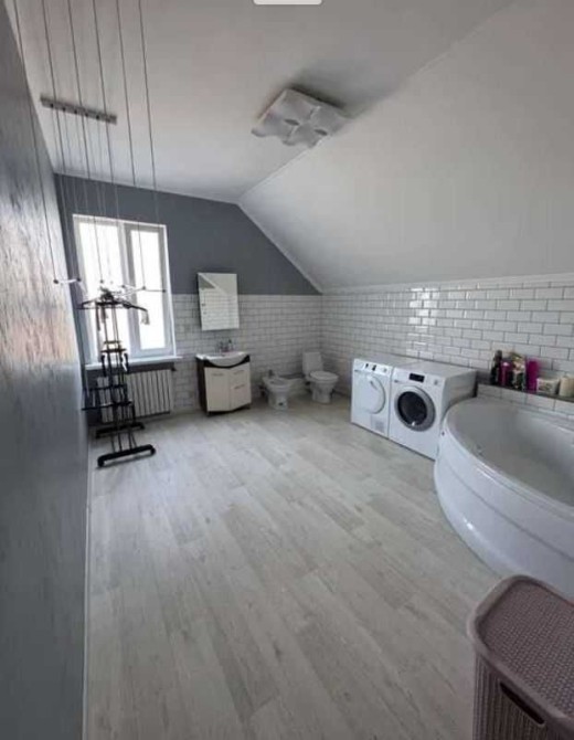Основний будинок 204 м² 2 поверхи, 4 спальні, велика кухня-столова Гардеробна, господарське приміщення Вбудований гараж Тепла підлога, двоконтурний котел Сучасний ремонт, багато світла Окремий будинок 120 м² 1 поверх: баня з теплою підлогою, підвал, майстерня, господарський блок 2 поверх: простора гостьова кімната з санвузлом Власний вхід, ідеально для гостей чи відпочинку