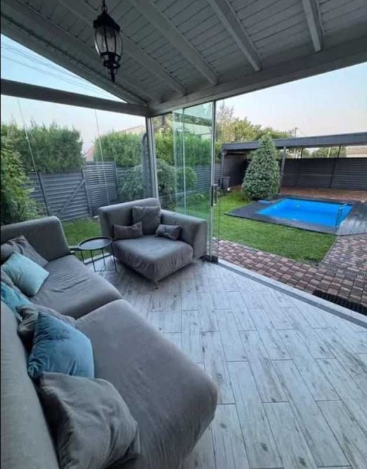 Ділянка 7 соток Басейн з фільтраційною системою Застеклена веранда з розсувними секціями Альтанка з барбекю та тандиром Ландшафтний дизайн з газоном та автополивом Критий паркувальний майданчик з автоматичними ролетами Комфорт та оснащення 7 кондиціонерів (Gree, CH)