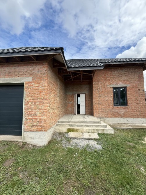 1 поверх: простора вітальня, кухня-студія з виходом на терасу, кімната, санвузол, гараж з автоматичними воротами та ямою, приміщення під котельню.