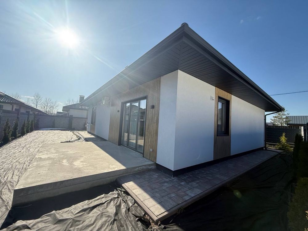 У будинку передбачено три кімнати, кухня-вітальня, два санвузли та технічне приміщення. Є критa тераса для відпочинку на свіжому повітрі.