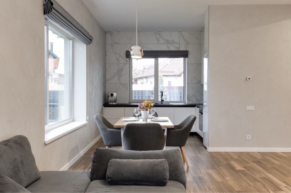 - велика кухня-вітальня, наповнена світлом