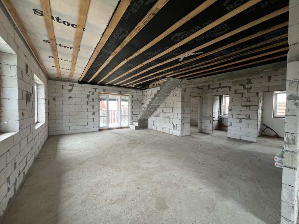 Продам новий будинок 2022 року на Нижньому ДНСі. Два поверхи плюс підвал і холодне горище. Газоблок Д-400 вкритий металочерепицею, обштукатурений і пофарбований, перекритий монолітним залізобетоном. Площа будинку 104 метри. Перший поверх: велика кухня 30 кв.м. з панорамним склінням і виходом на задній двір, передпокій, коридор, перший санвузол. Другий поверх: три житлові кімнати, другий санвузол, сходовий марш. У підвалі котельна, на горище розкладна драбина. Заведена вода зі свердловини 85 метрів, водовідведення в центральну каналізацію. Електроенергія 20 КВт. Змонтована система водяних теплих підлог і радіаторів, електричний котел на 10 КВт. По усьому будинку виконана розводка електрики. Стіни перетерті, металопластикові вікна з теплими скосами, в обох санвузлах розведена і змонтована сантехніка, укладений кахель, душова кабіна на першому і ванна на другому поверсі. На першому поверсі поли викладено плиткою, на другий закуплено і залишиться ламінат, також закуплені і залишаться вуличні світильники та деякі інші матеріали. Залізобетонні сходи на другий поверх викладені керамогранітом. Ділянка 2.5 сотки, обгороджена, відкатні автоматичні ворота. Двір вимощений тротуарною плиткою, змонтовано відведення стічних вод в дренажний колодязь. Залитий фундамент і колони під бесідку і барбекю. З вікон і бесідки відкривається чудовий панорамний краєвид на зелену зону річки Рось. Ціна: 160.000 у.о. Торг. Запрошуємо до співпраці продавців і орендодавців нерухомості. Агенція нерухомості пропонує повний перелік операцій з нерухомістю та супровідною документацією. Купівля-продаж, оренда, обмін житлових та комерційних об’єктів, земельних ділянок. Оцінка майна ринкова та для оподаткування. Технічні паспорти. Узаконення самочинного будівництва, добудови, перепланування. Початок будівництва та ввід в експлуатацію. Землевпорядні роботи: кадастровий номер, приватизація, розподіл, об’єднання, зміна призначення. Кредитування під заставу нерухомості. Безкоштовно приймаємо заявки від продавців та орендодавців. Гарантія конфіденційності. Юридичний супровід. м.Біла Церква Тел.(097)-879-80-99