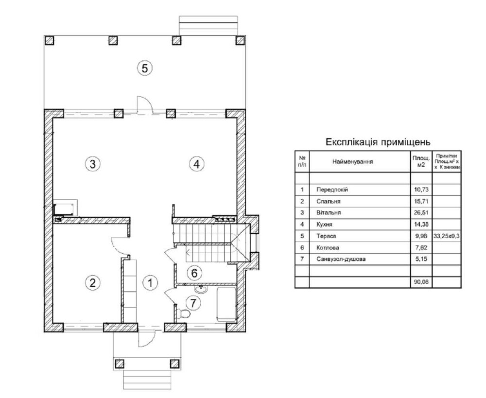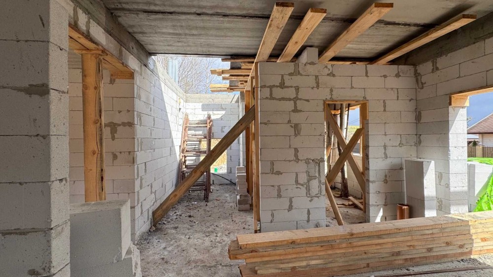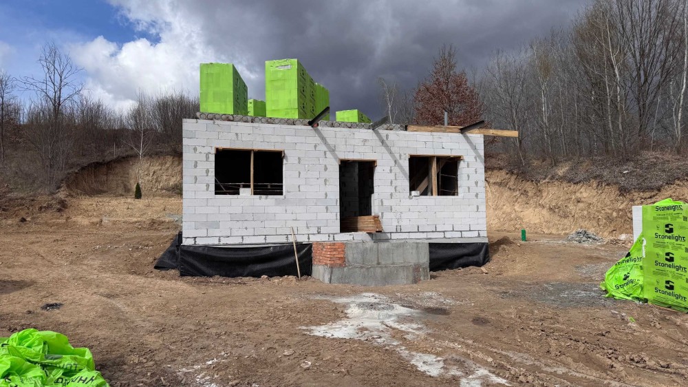 Площа будинку 155 кв.м. (кухня-вітальня, 4 спальні, 3 санвузли, гардероб) - готовий 1 поверх та закуплені матеріали на 2 поверх.