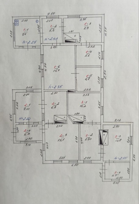 Загальна площа 120м2, висота 2,8м,9кімнат.