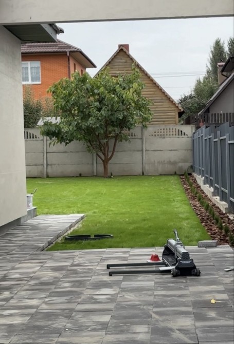 - Земельна ділянка 6 сотих — озеленена, з газоном і туями