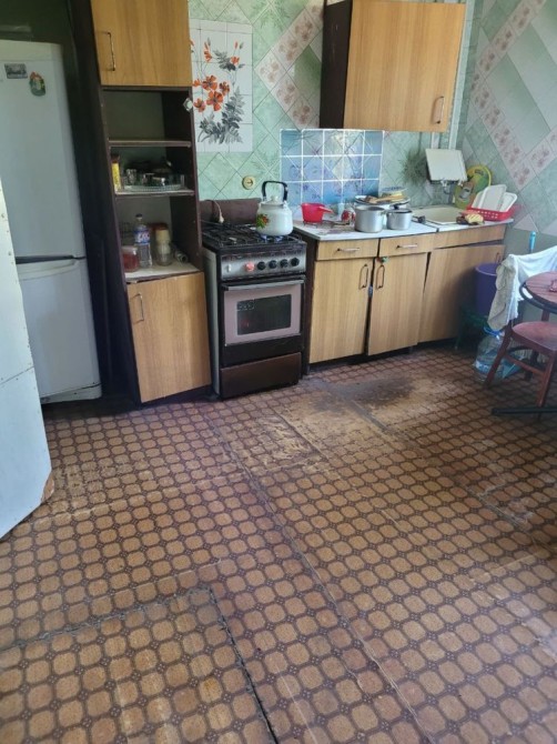 Будинок просторий, 85 кв, з 3ма роздільними кімнатами і 1ю прохідною, великою кухнею 14 кв, великим роздільним санвузлом, високими потоками і великими вікнами. Газ і вода у домі, каналізація- яма. Будинок взимку отоплюється і зараз, є димоход, можливо зробити камін.