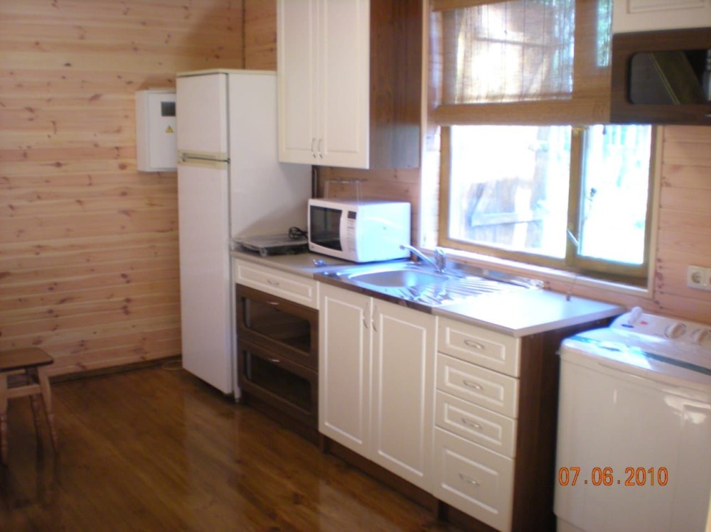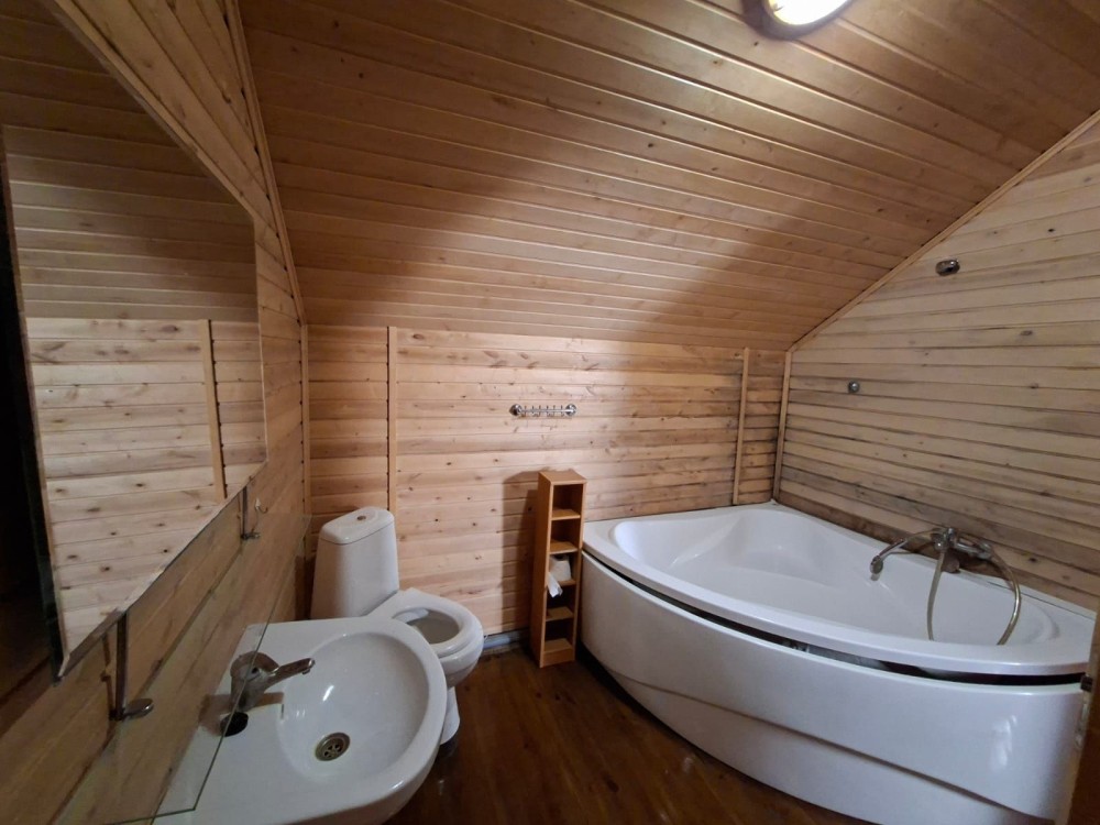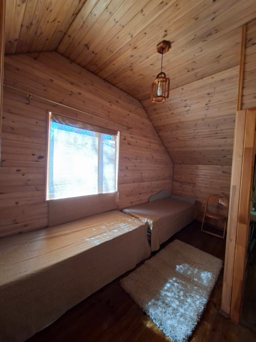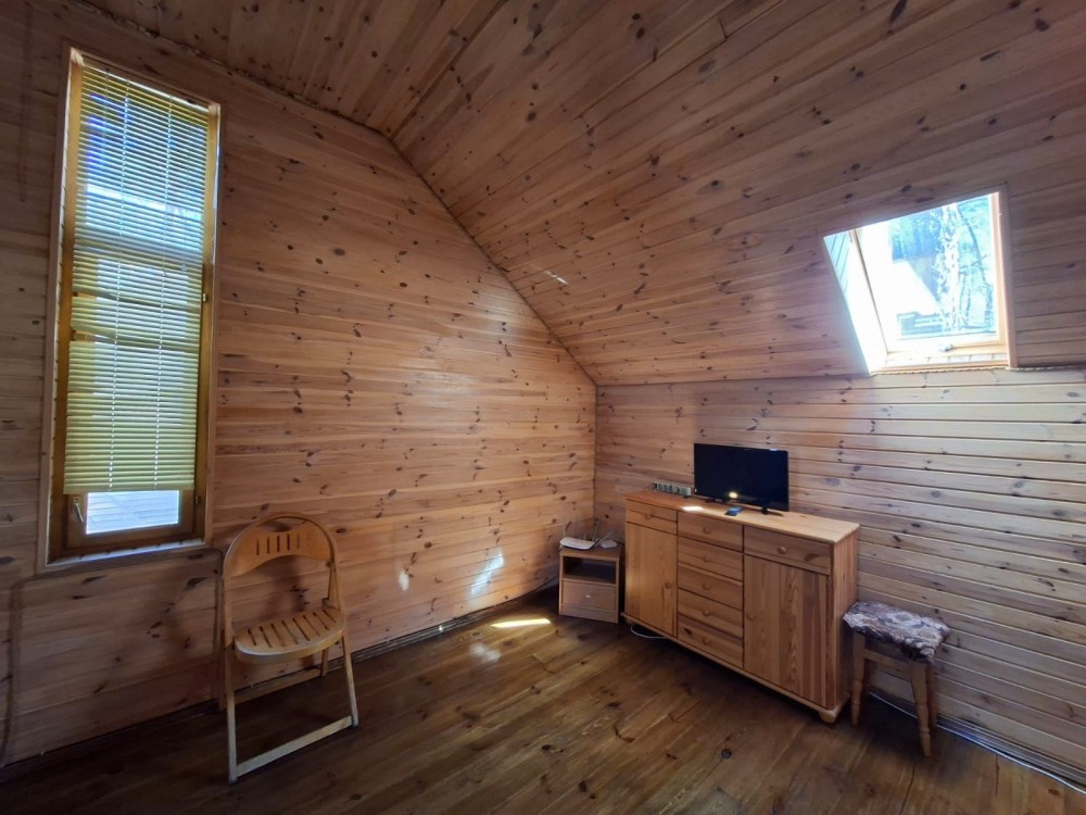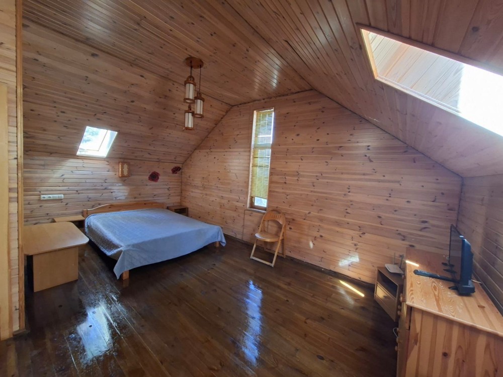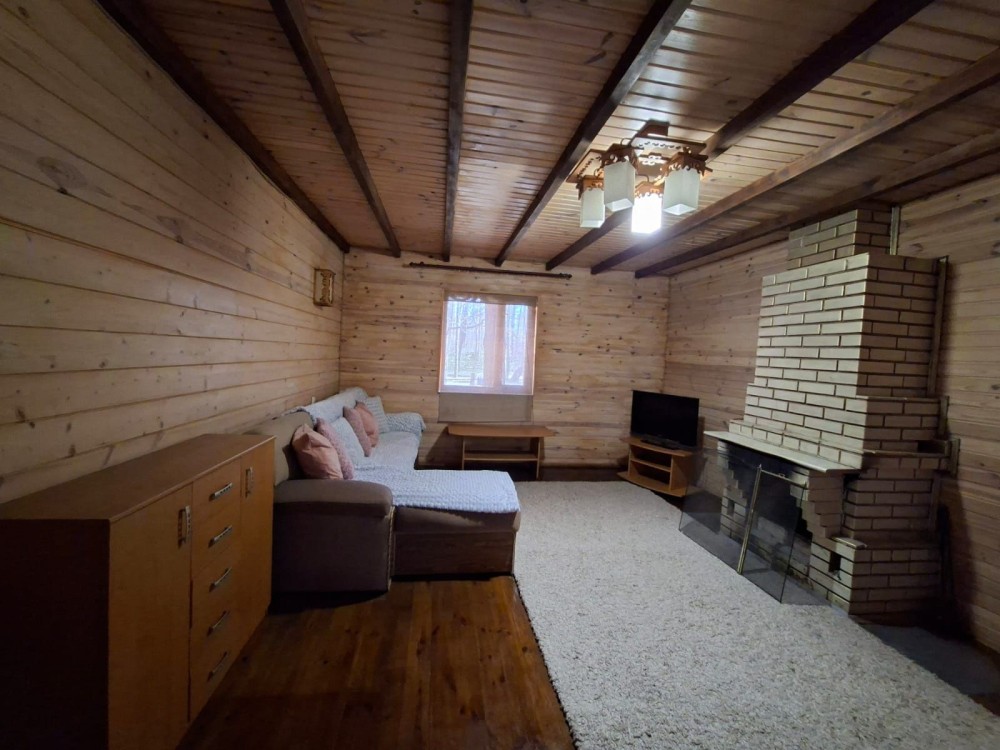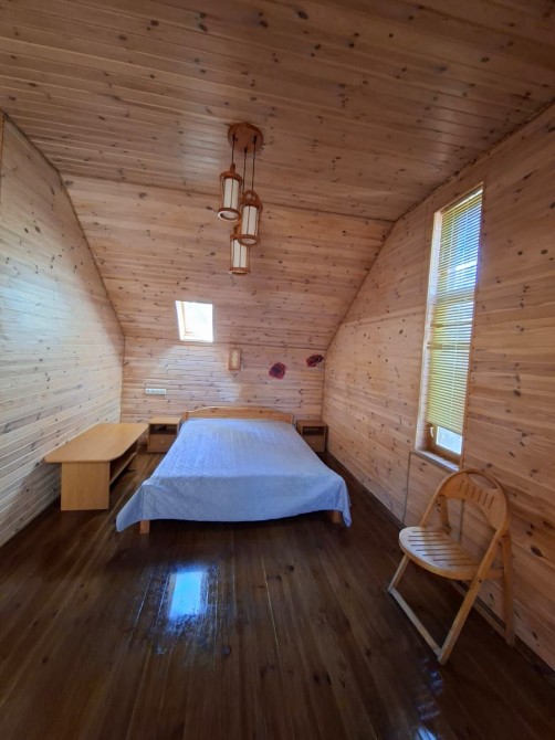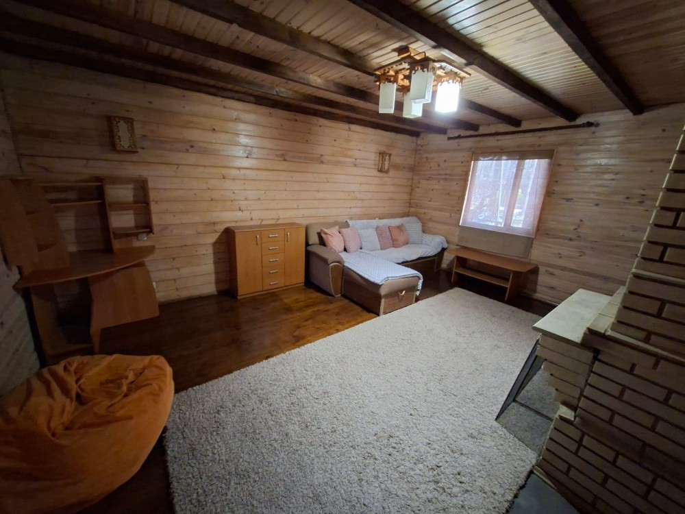 Будинок дерев'яний двоповерховий, з двома спальнями, двома санвузлами, камін, скважина, інтернет, барбекю.