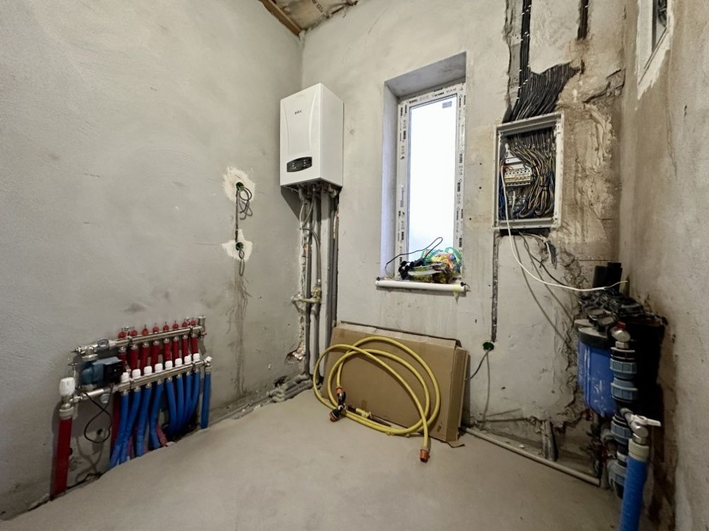 Продам новий будинок 2022 року на Нижньому ДНСі. Два поверхи плюс підвал і холодне горище. Газоблок Д-400 вкритий металочерепицею, обштукатурений і пофарбований, перекритий монолітним залізобетоном. Площа будинку 104 метри. Перший поверх: велика кухня 30 кв.м. з панорамним склінням і виходом на задній двір, передпокій, коридор, перший санвузол. Другий поверх: три житлові кімнати, другий санвузол, сходовий марш. У підвалі котельна, на горище розкладна драбина. Заведена вода зі свердловини 85 метрів, водовідведення в центральну каналізацію. Електроенергія 20 КВт. Змонтована система водяних теплих підлог і радіаторів, електричний котел на 10 КВт. По усьому будинку виконана розводка електрики. Стіни перетерті, металопластикові вікна з теплими скосами, в обох санвузлах розведена і змонтована сантехніка, укладений кахель, душова кабіна на першому і ванна на другому поверсі. На першому поверсі поли викладено плиткою, на другий закуплено і залишиться ламінат, також закуплені і залишаться вуличні світильники та деякі інші матеріали. Залізобетонні сходи на другий поверх викладені керамогранітом. Ділянка 2.5 сотки, обгороджена, відкатні автоматичні ворота. Двір вимощений тротуарною плиткою, змонтовано відведення стічних вод в дренажний колодязь. Залитий фундамент і колони під бесідку і барбекю. З вікон і бесідки відкривається чудовий панорамний краєвид на зелену зону річки Рось. Ціна: 160.000 у.о. Торг. Запрошуємо до співпраці продавців і орендодавців нерухомості. Агенція нерухомості пропонує повний перелік операцій з нерухомістю та супровідною документацією. Купівля-продаж, оренда, обмін житлових та комерційних об’єктів, земельних ділянок. Оцінка майна ринкова та для оподаткування. Технічні паспорти. Узаконення самочинного будівництва, добудови, перепланування. Початок будівництва та ввід в експлуатацію. Землевпорядні роботи: кадастровий номер, приватизація, розподіл, об’єднання, зміна призначення. Кредитування під заставу нерухомості. Безкоштовно приймаємо заявки від продавців та орендодавців. Гарантія конфіденційності. Юридичний супровід. м.Біла Церква Тел.(097)-879-80-99