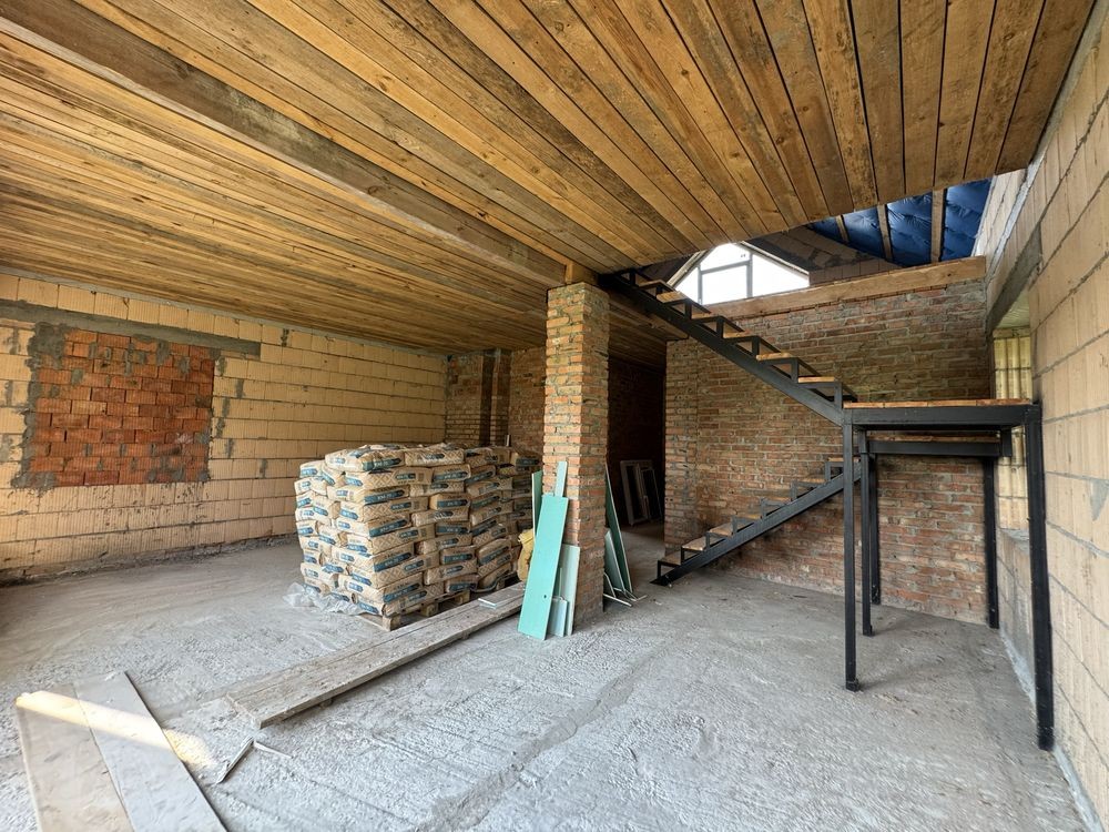 Перший поверх - велика кухня-вітальня з виходом на задній двір є окрема кімната, санвузол. На другому поверсі вільне планування.