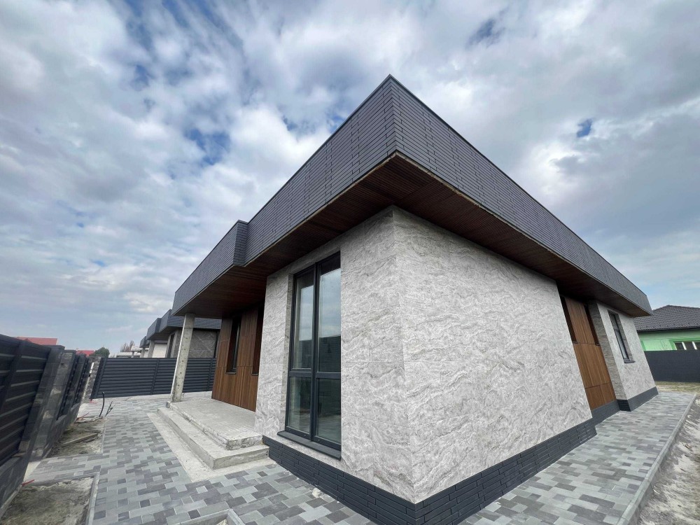 • Фасад: комбінований (плитка + натуральне дерево)