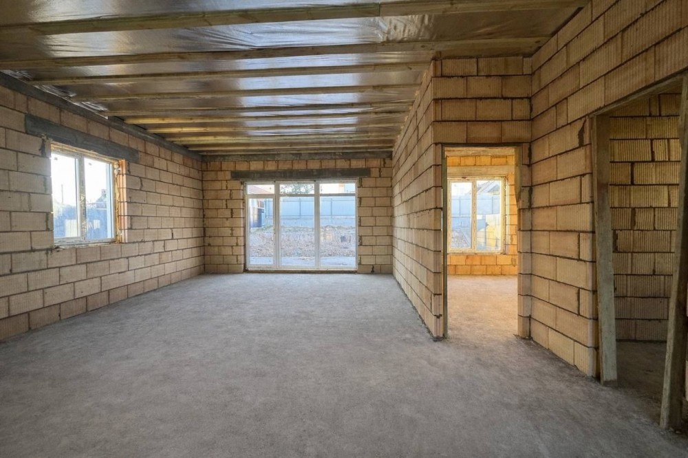Продається новий індивідуальний житловий будинок котеджного типу загальною площею 131 м.кв. під чистове оздоблення, розташований в селі Крячки Фастівського (колишнього Васильківського) району Київської області на території нового житлового масиву із сучасною котеджною забудовою, що перебуває на відстані 20 км від станції метро «Теремки» міста Києва та за 1,5 км від міста Васильків. Житловий будинок складається з першого та мансардного поверхів. Загальна площа будинку із допоміжними спорудами становить 173,1 м.кв., з яких: а) площа будинку ‒ 131,0 м.кв., у тому числі житлова (основна) ‒ 94,1 м.кв. та допоміжна (підсобна) ‒ 39,6 м.кв.; б) площа тераси – 23,1 м.кв.; в) площа трьох балконів – 13,4 м.кв. (5,8 + 4,9 +2,7 м.кв.); площа ґанку – 5,6 м.кв. Котедж вміщує в собі 5 (п’ять) доволі просторих кімнат, 2 (два) санвузли (на кожному із поверхів), 1 (одне) технічне приміщення (котельня або бойлерна), 2 (два) коридори, 1 (одну) вітальню із виділеною еркером обідньою зоною, що поєднана з кухнею. Із вітальні є окремий вихід на велику терасу, з якої відкривається затишний вигляд на внутрішній двір. Кожна з трьох мансардних кімнат має окремий вихід на балкон. Над усією площею мансардного поверху розташоване містке горищне приміщення. Будинок приєднаний до електропостачання потужністю ‒ 12кВт (3 окремих фази). Має свердловину глибиною 55 метрів із фактичним дебітом (спроможною потужністю) ‒ 2,5 м.куб./год. та каналізацію септик з переливом на 11 м.куб. На усій площі першого (крім житлової кімнати) та у санвузлі мансардного поверхів встановлена система водяної теплої підлоги фірми «Rehau». По котеджу розведені: опалення, водопостачання і каналізація. В будинку передбачена можливість встановлення камінної топки, а також приєднання котеджу до газорозподільної мережі та всесвітньої мережі Інтернет. Індивідуальний житловий будинок розташований на земельній ділянці площею 0,075га з цільовим призначенням – (02.01) для будівництва і обслуговування житлового будинку, господарських будівель і споруд (присадибна ділянка). Під житловою забудовою перебуває 0,0115га земельної ділянки, решта 0,0635га займає просторий двір. Кадастровий номер земельної ділянки: 3221487004:03:006:0328. Земельна ділянка огороджена парканом із монолітного фундаменту, що опорядковане металевим штахетом із обох боків та металевим профілем з тильної та фасадної сторін. Заїзд у двір має відкатні ворота. На території двору (перед будинком) облаштоване загальне паркомісце на 2 (два) автомобіля, решта двору засіяне газонною травою. Котедж побудований з якісних матеріалів за проектом європейського архітектурного бюро. Так, фундамент, перекриття та міжповерхові сходи ‒ монолітні. Стіни будинку збудовані з газоблоку AEROC D500 (товщиною 300мм), що утеплений пінопластом 100мм. Внутрішні міжкімнатні перегородки виконані із цегли. Дах ‒ металочерепиця фірми «Ruukki», що утеплений мінераловатними плитами загальною товщиною 200мм. Вікна вироблені з профілю фірми «Rehau» серії EVRO 70. Фасад котеджу покритий акриловою штукатуркою. Будинок за усім периметром має вимощення шириною 0,9 метри, що облаштоване фігурними елементами мощення (ФЕМ). Зручне ергономічне планування будинку, а також наявність високих стель обох поверхів дає можливість відчувати себе вільно і затишно. Завдяки правильному утепленню зовнішніх стін будинку, у ньому прохолодно влітку та тепло вз