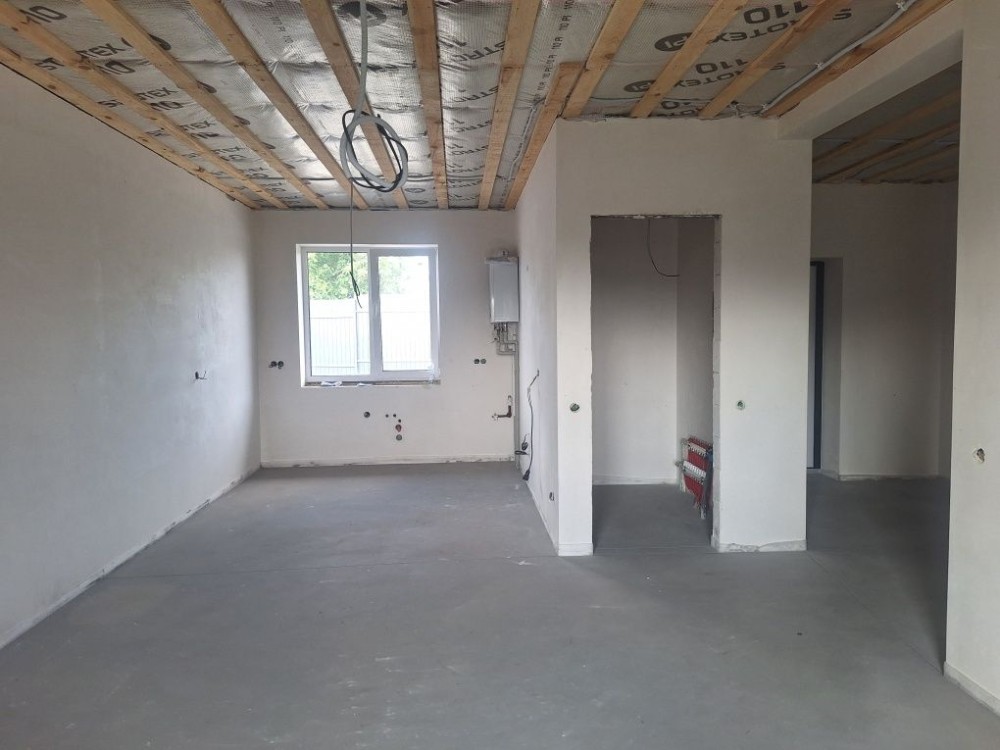 Під чистове оздоблення, тепла ВОДЯНА підлога, чистова стяжка пола, штукатурка стін, розводка електрики, підключено 15кВт, розводка сан.техніки, газовий котел двохконтурний.