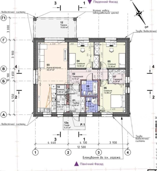 Кухня -вітальня, три спальні( одна з них мастер-спальня з санвузлом і гардеробом) санвузол, котельня