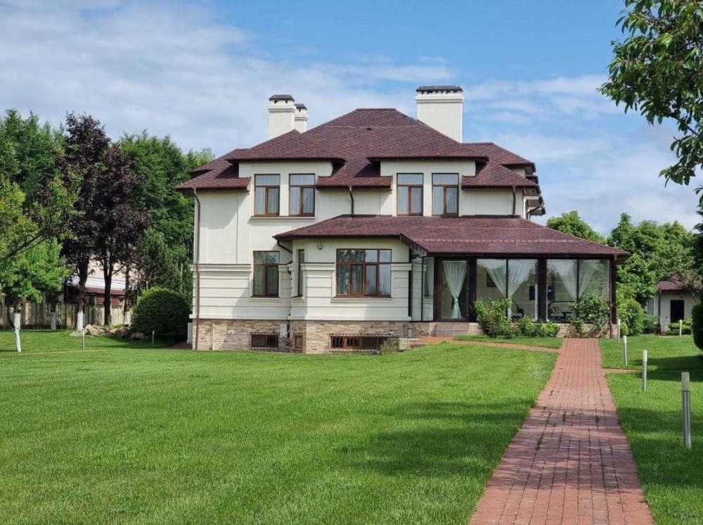 Двоповерховий будинок з цоколем (430 м2) в елітному закритому котеджному містечку Конча-Заспі, що охороняється, по вул. Озерній знаходиться на ділянці загальною площею 60 соток. У будинку є льох для вин і консервації.