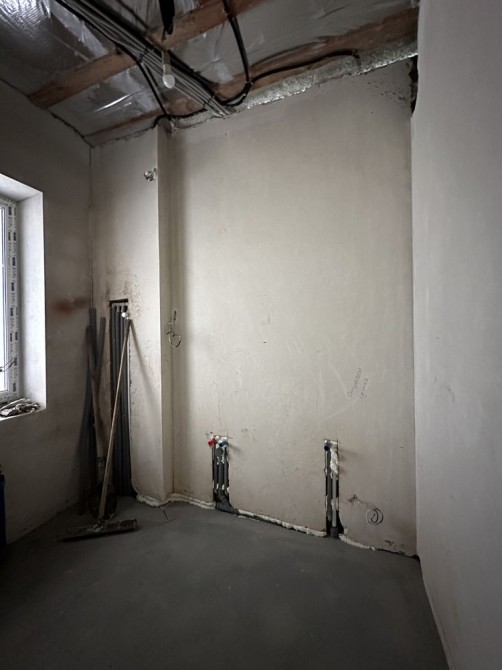 Стяжка, штукатурка, тепла підлога + виходи під радіатори, розведена електрика та каналізація, інтернет.