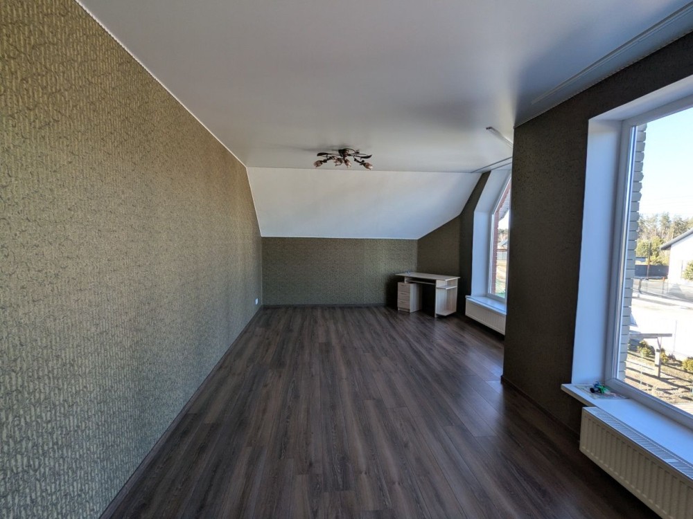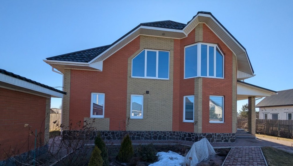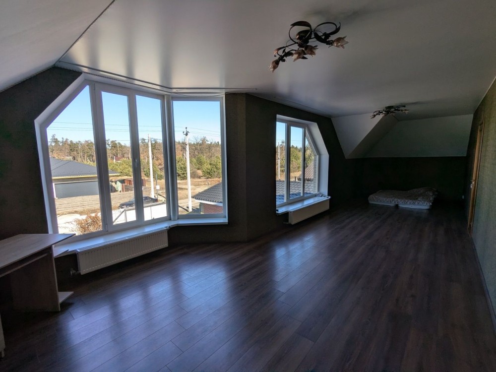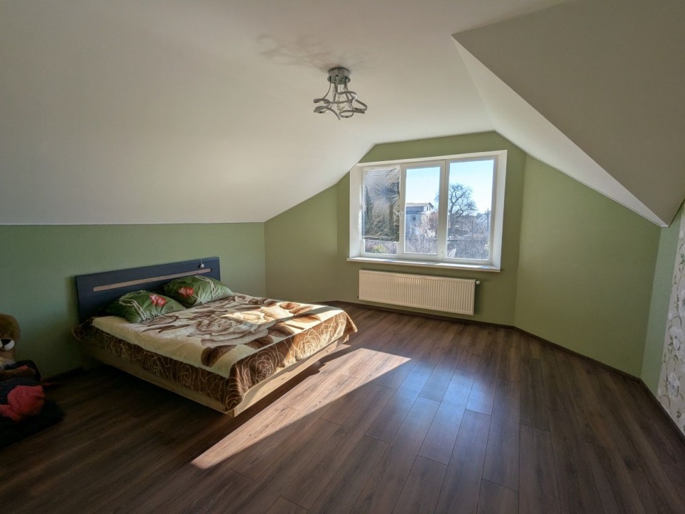 Будинок двоповерховий, загальною площею 243 кв.м., побудований з екологічно чистих матеріалів та з використанням якісних комплектуючих, має велику залу з виходом на терассу, простору кухню, 5 спален.