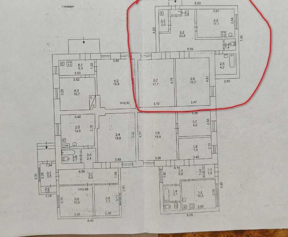 Продам частину котеджу в районі 95 кварталу. Будинок на 4 власники. У кожного своє подвір'я, своя ділянка. Місце затишне і водночас в центрі міста.