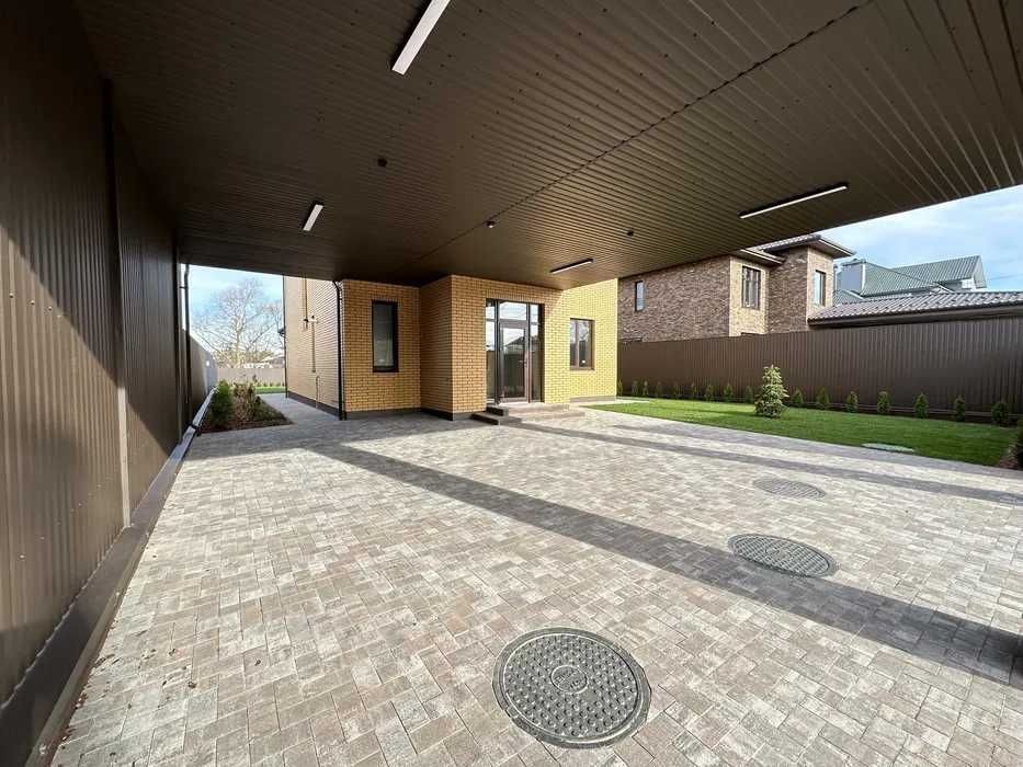 Загальна площа будинку — 182 м². Є простора тераса 30 м² для відпочинку та автонавіс на два авто.