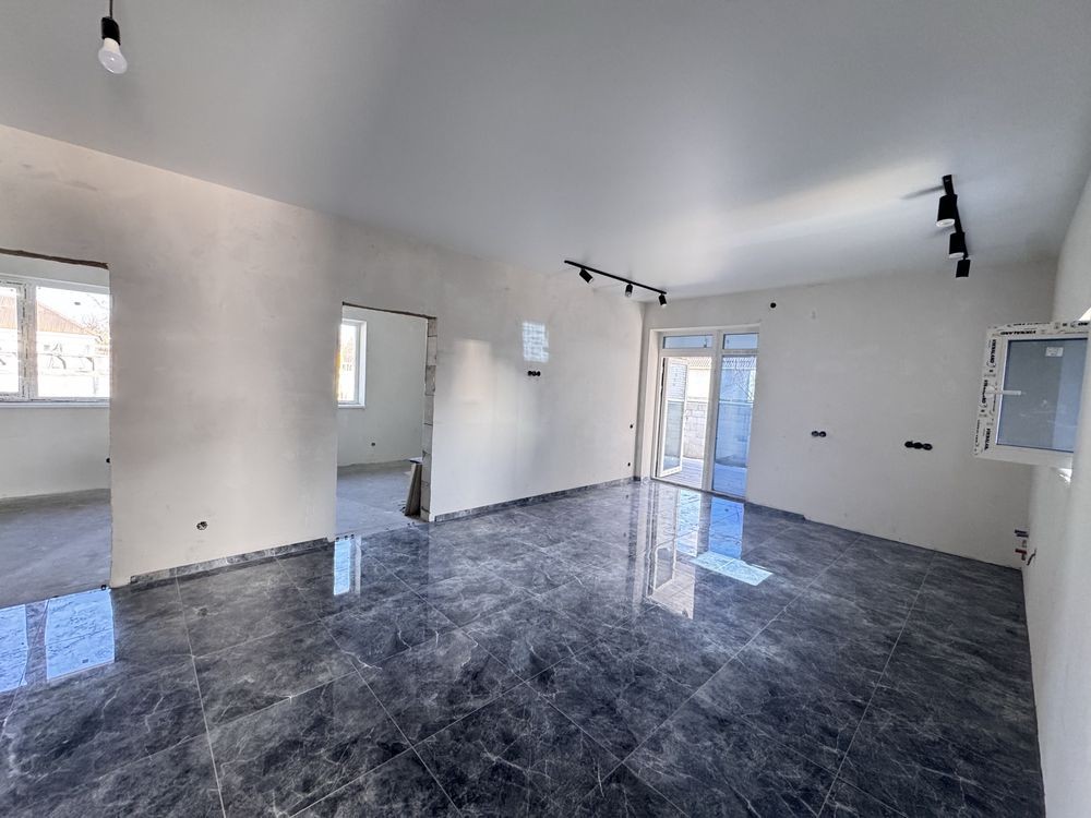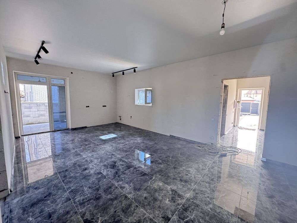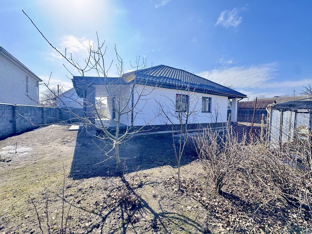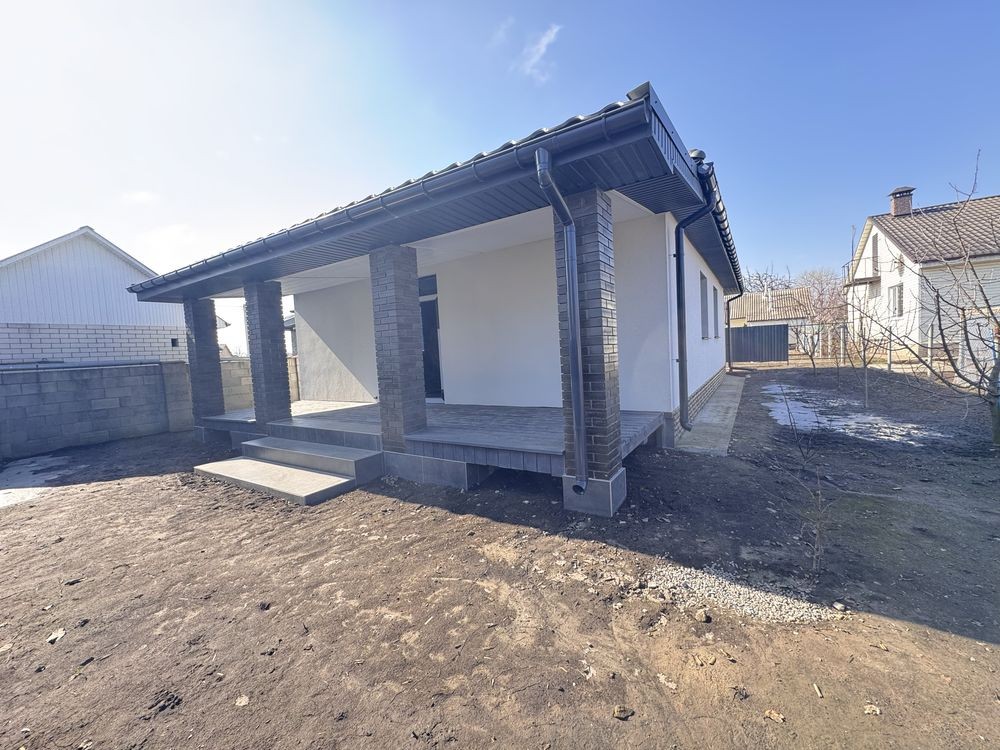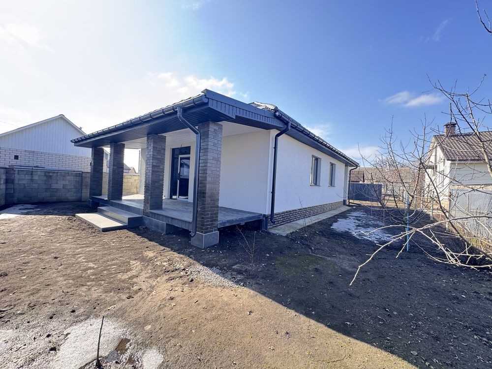 Будинок загальною площею 100 м2 розташований на ділянці 5 соток. Збудований якісно, продумане планування для комфортного життя: три просторі кімнати, велика кухня-студія з виходом на терасу, два санвузли та окрема котельня.