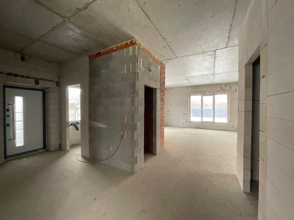Продам новий будинок 2022 року на Нижньому ДНСі. Два поверхи плюс підвал і холодне горище. Газоблок Д-400 вкритий металочерепицею, обштукатурений і пофарбований, перекритий монолітним залізобетоном. Площа будинку 104 метри. Перший поверх: велика кухня 30 кв.м. з панорамним склінням і виходом на задній двір, передпокій, коридор, перший санвузол. Другий поверх: три житлові кімнати, другий санвузол, сходовий марш. У підвалі котельна, на горище розкладна драбина. Заведена вода зі свердловини 85 метрів, водовідведення в центральну каналізацію. Електроенергія 20 КВт. Змонтована система водяних теплих підлог і радіаторів, електричний котел на 10 КВт. По усьому будинку виконана розводка електрики. Стіни перетерті, металопластикові вікна з теплими скосами, в обох санвузлах розведена і змонтована сантехніка, укладений кахель, душова кабіна на першому і ванна на другому поверсі. На першому поверсі поли викладено плиткою, на другий закуплено і залишиться ламінат, також закуплені і залишаться вуличні світильники та деякі інші матеріали. Залізобетонні сходи на другий поверх викладені керамогранітом. Ділянка 2.5 сотки, обгороджена, відкатні автоматичні ворота. Двір вимощений тротуарною плиткою, змонтовано відведення стічних вод в дренажний колодязь. Залитий фундамент і колони під бесідку і барбекю. З вікон і бесідки відкривається чудовий панорамний краєвид на зелену зону річки Рось. Ціна: 160.000 у.о. Торг. Запрошуємо до співпраці продавців і орендодавців нерухомості. Агенція нерухомості пропонує повний перелік операцій з нерухомістю та супровідною документацією. Купівля-продаж, оренда, обмін житлових та комерційних об’єктів, земельних ділянок. Оцінка майна ринкова та для оподаткування. Технічні паспорти. Узаконення самочинного будівництва, добудови, перепланування. Початок будівництва та ввід в експлуатацію. Землевпорядні роботи: кадастровий номер, приватизація, розподіл, об’єднання, зміна призначення. Кредитування під заставу нерухомості. Безкоштовно приймаємо заявки від продавців та орендодавців. Гарантія конфіденційності. Юридичний супровід. м.Біла Церква Тел.(097)-879-80-99