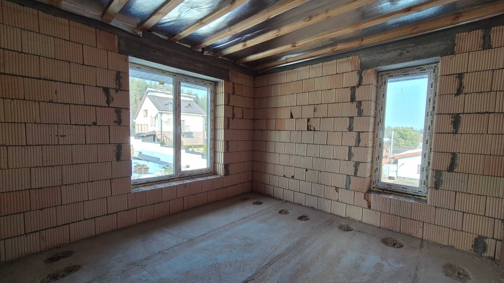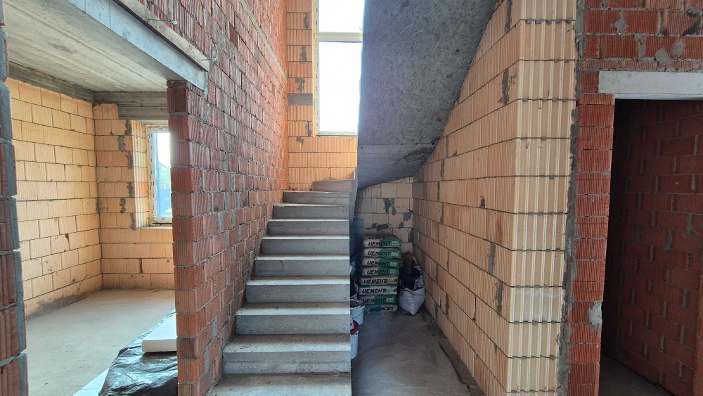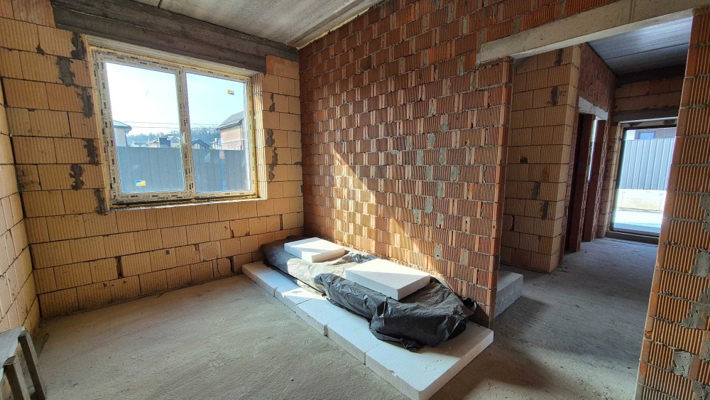 Будинок збудований з керамоблоку, утеплений пінополістиролом. Дах — металочерепиця, що забезпечує надійність та довговічність конструкції.