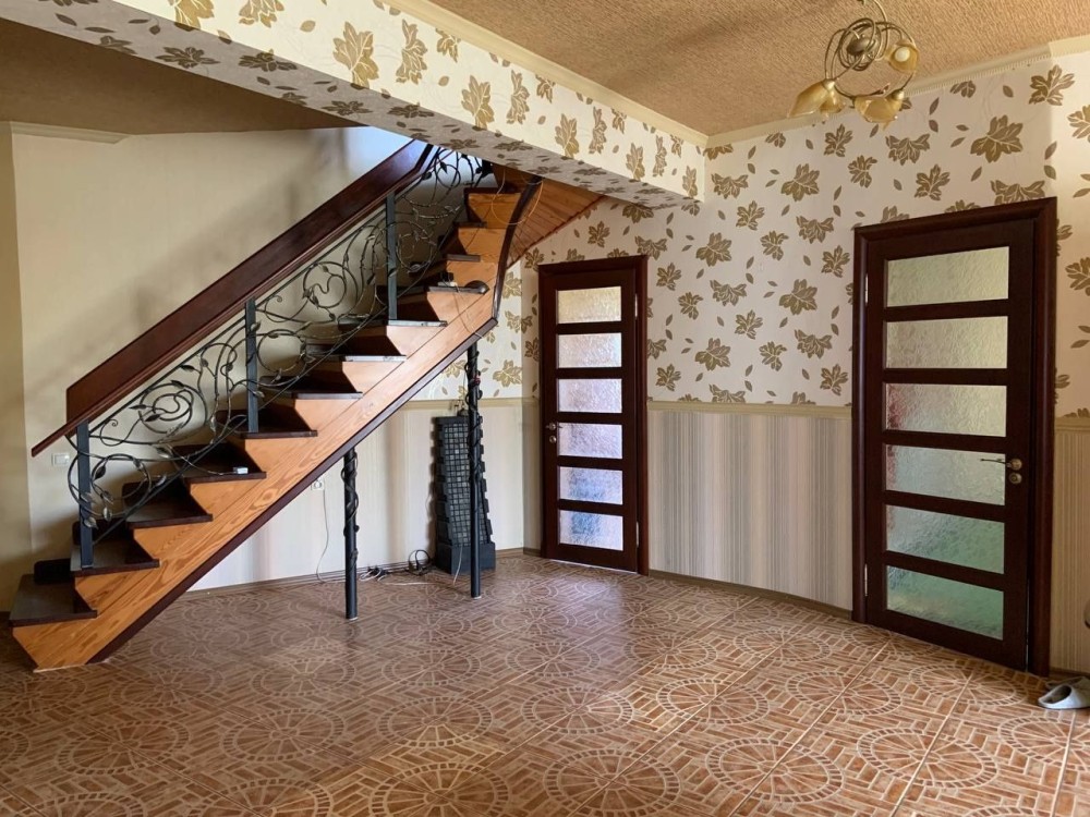 Будинок для тих хто цінує тишу, комфорт, затишок, природу і риболовлю. Спокій і гармонія. До маршрутки 20м., до школи 500м. Будівля 2 поверхи, 6 кімнат, гараж на кілька машин на цокольному поверсі. Двох контурний котел, підлога з підігрівом, живий камін з мармуру та граніту. Кам'яні підвіконня з середини та зовні. У дворі ставок та кам'яна альтанка з мангалом. Додатково для доріжок є гранітна бруківка