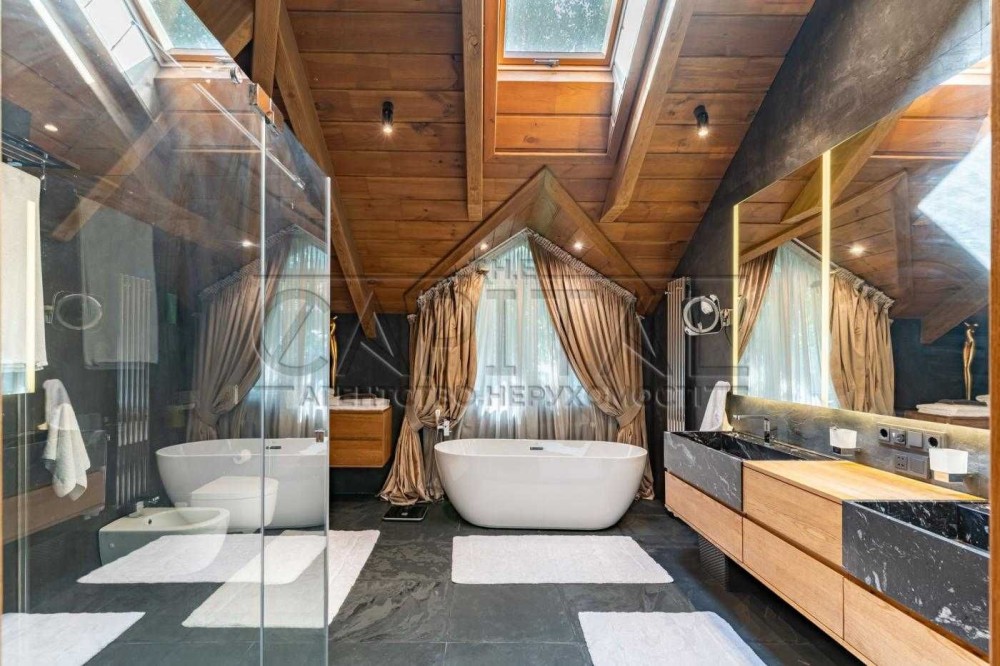Загальна площа будинку складає 800 м2, включаючи підземні приміщення та комори. Житлова площа становить 350 м2 + власна простора тераса. Будинок мебльований виробами від кращих італійських виробників, а всі матеріали належать до найвищої категорії якості.