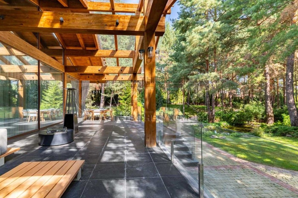 На території будинку розташована окремо стояча лазня, яка є справжньою зоною відпочинку. Вона включає сольову кімнату, купальню та велику вітальню зі смарт-телевізором, що створює ідеальні умови для відпочинку.