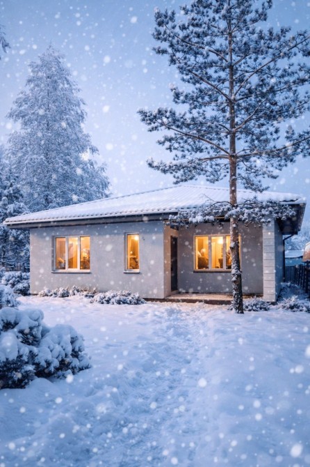 Будинок зведений із піноблоку 300 мм, додатково утеплений пінопластом 50 мм, що забезпечує гарні показники енергоефективності та комфорту в будь-яку пору року.
