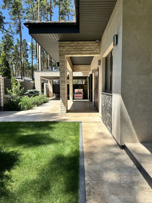 • Фасад оздоблений натуральним травертином