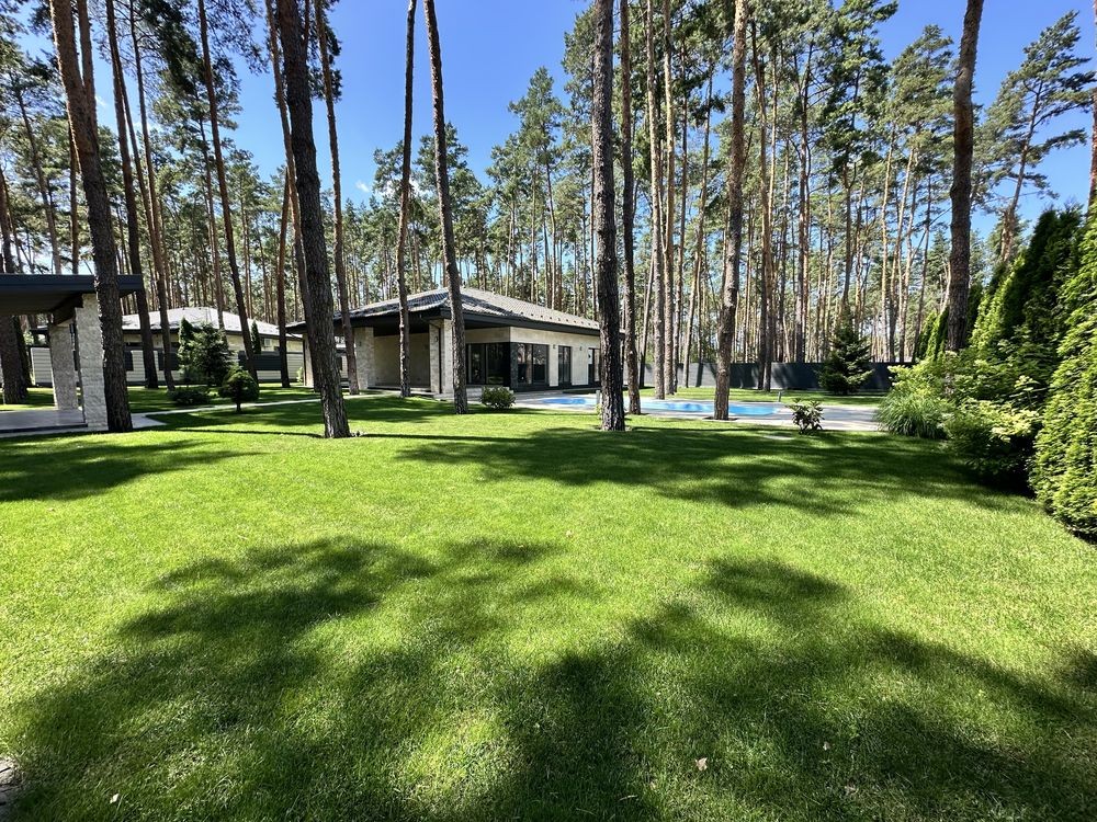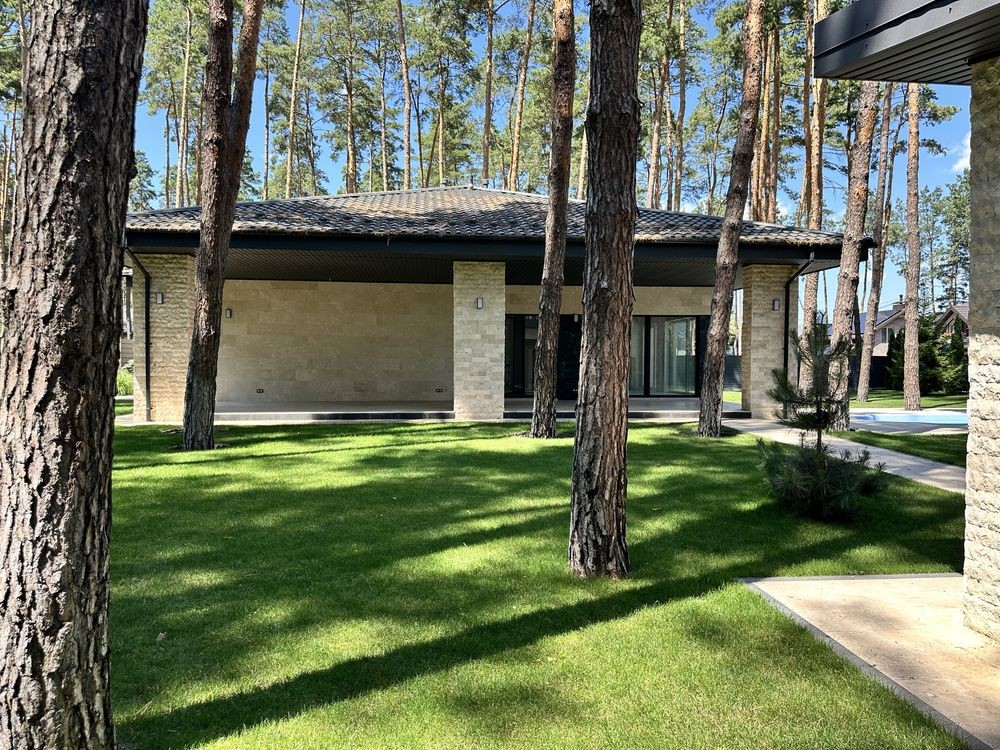 Продаж одного з найкращих проєктів — одноповерховий будинок з терасою, басейном і ландшафтним дизайном у сосновій локації