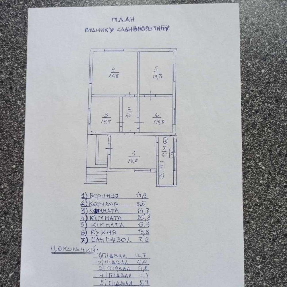 - поверх: веранда, кухня, три окремих кімнати