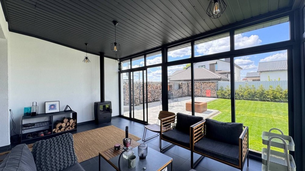 - Дизайнерський ремонт: тепла підлога по всьому периметру, камін (для опалення + атмосфера), система рекуперації повітря, три кондиціонери.