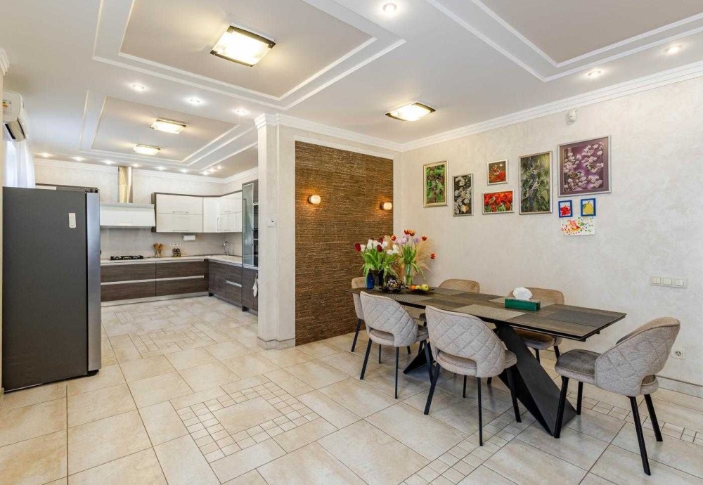 • Кухня повністю укомплектована технікою (газова поверхня, духова шафа, витяжка, посудомийна машина, холодильник).