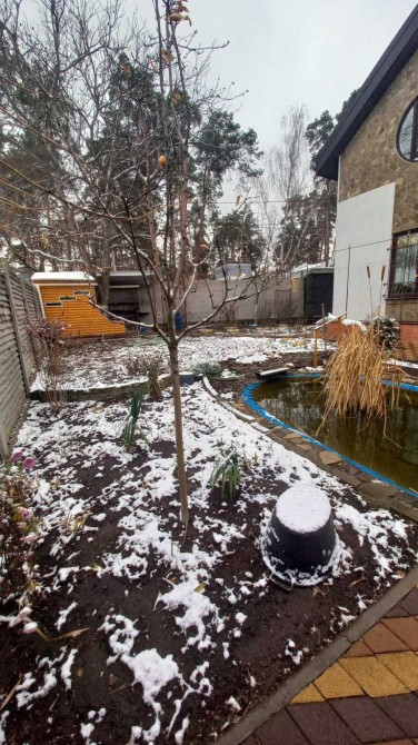 На території будинку зроблена альтанка з дерева, озеро, де плаває рибка, погріб, майстерня.