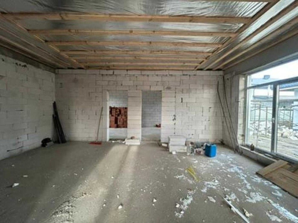 Газ є. В дворі бруківка. Несучі стіни поштукатурені. Чорнова стяжка. 13 кВт, свердловина 45 м, септик переливний 10 м3