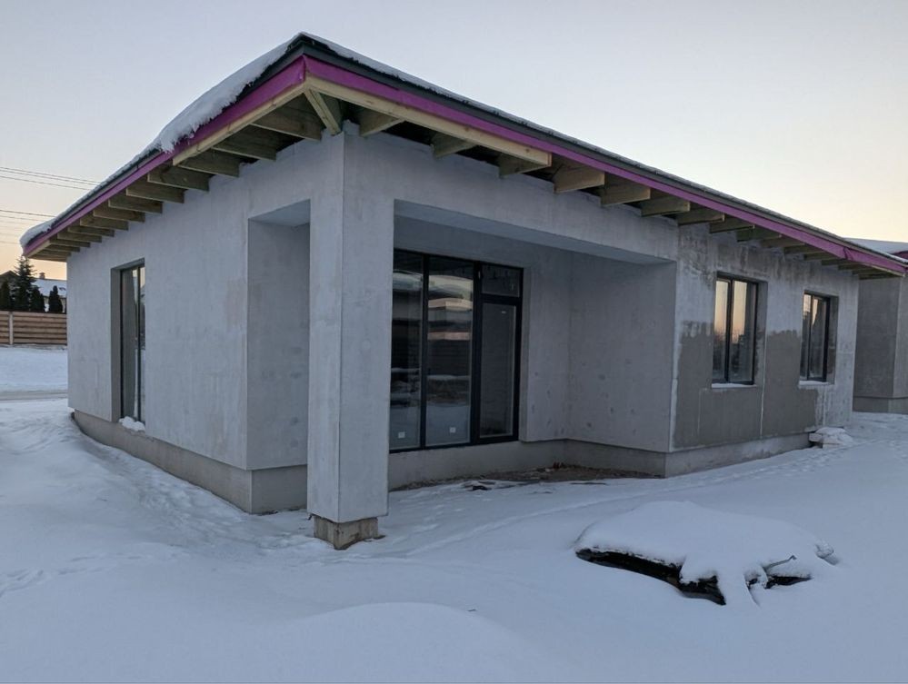• Фасад: утеплення товщиною 150мм оздоблений зовнішньою декоративною штукатуркою. Теплотехнічні показники зовнішніх стін, суттєво перевищують будівельні норми України і наближаються до стандартів енергоефективного будинку;