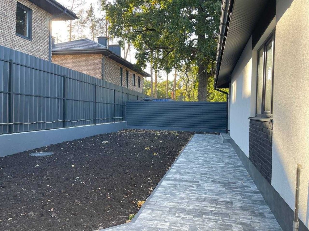 Тераса 15 м2. Благоустрій: відкатні ворота, паркан, чернозем.