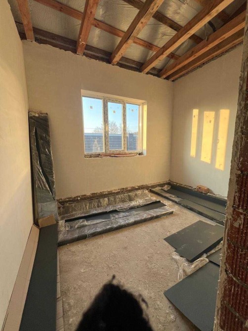 В будинку виконані роботи гіпсова штукатурка та чорнова стяжка полу.