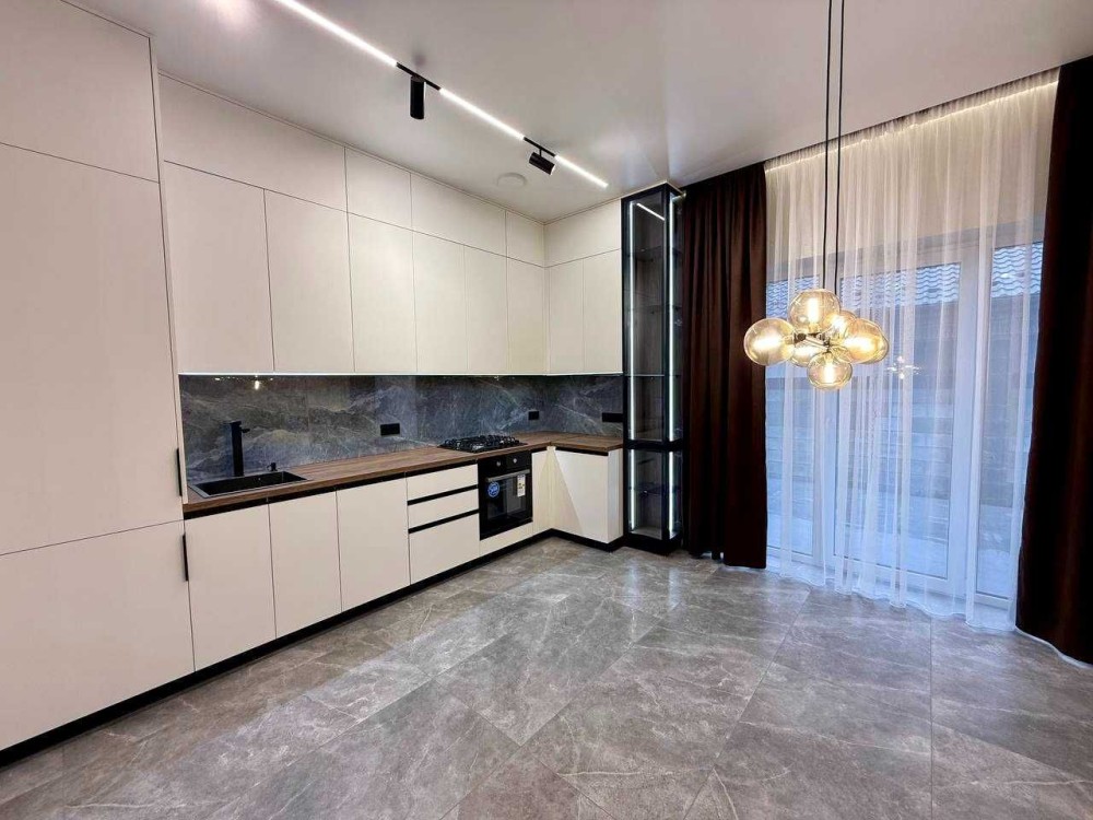 Кухня повністю укомплектована меблями та технікою.
