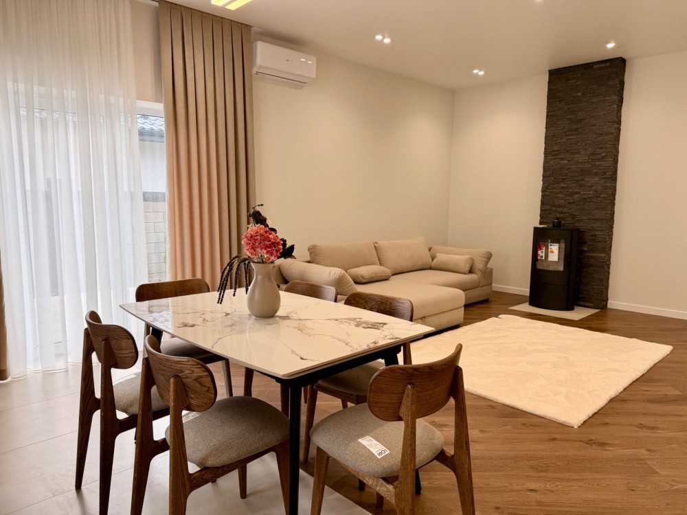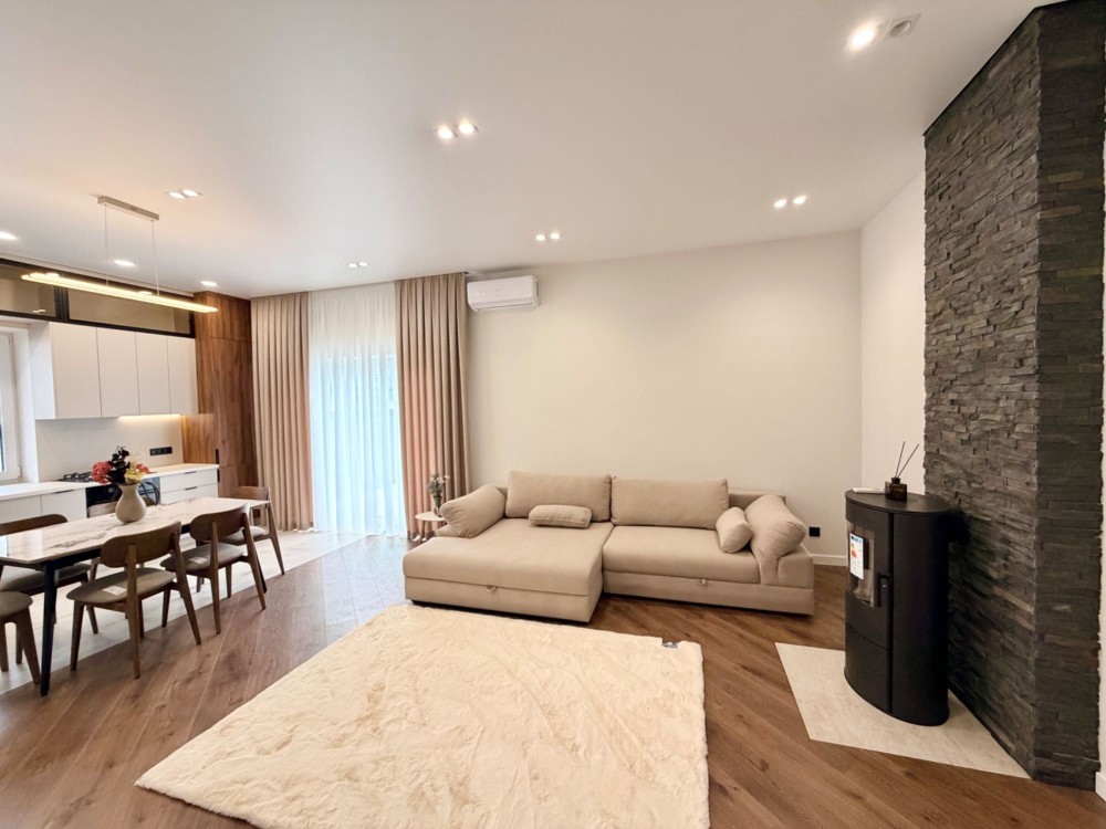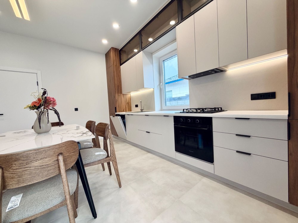 В будинку зроблений новий сучасний ремонт в світлих відтінках, затишна робоча зона кухні, великі вікна, укомплектований всією технікою. Залишається лише завезти меблі у спальні і можна заїжджати жити.
