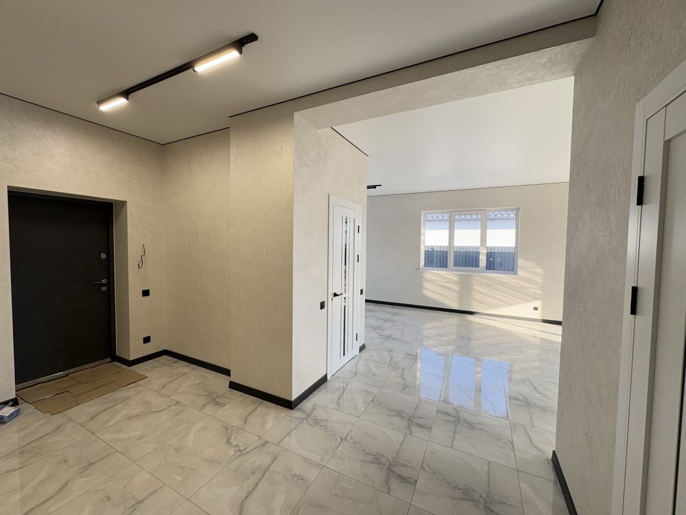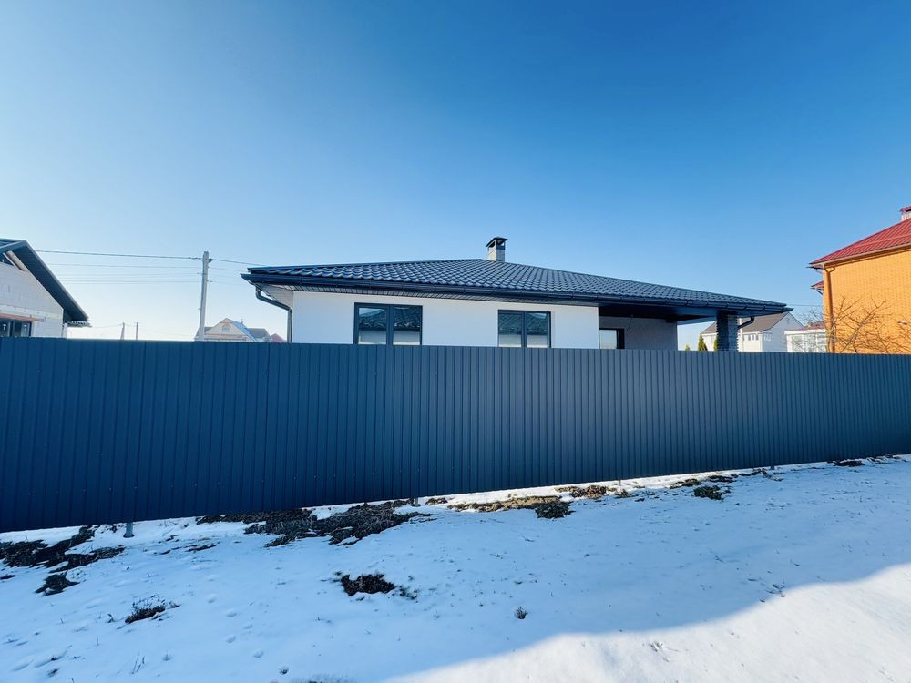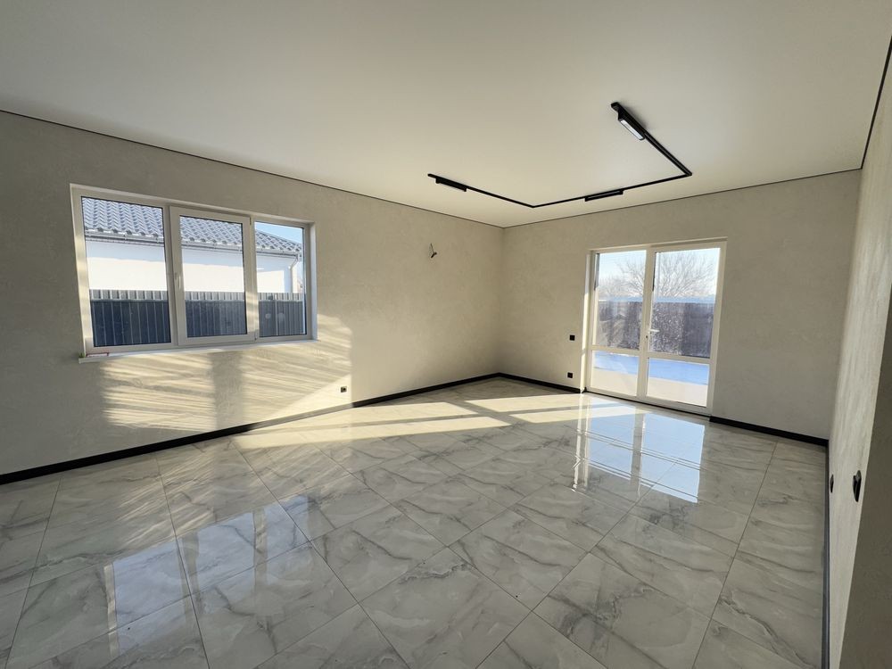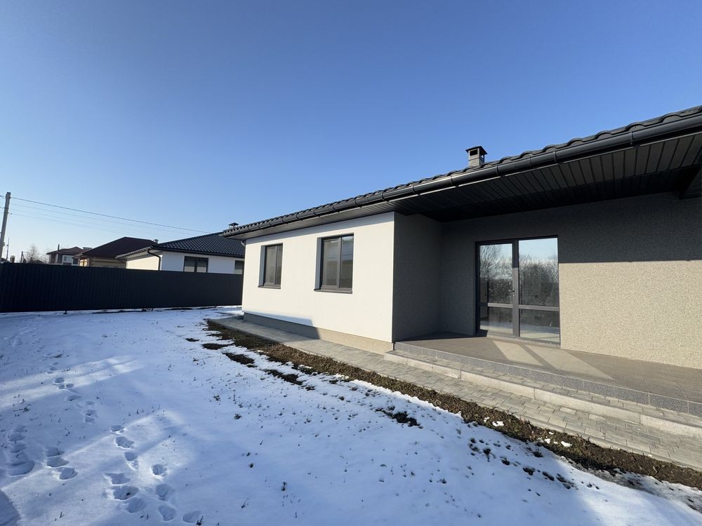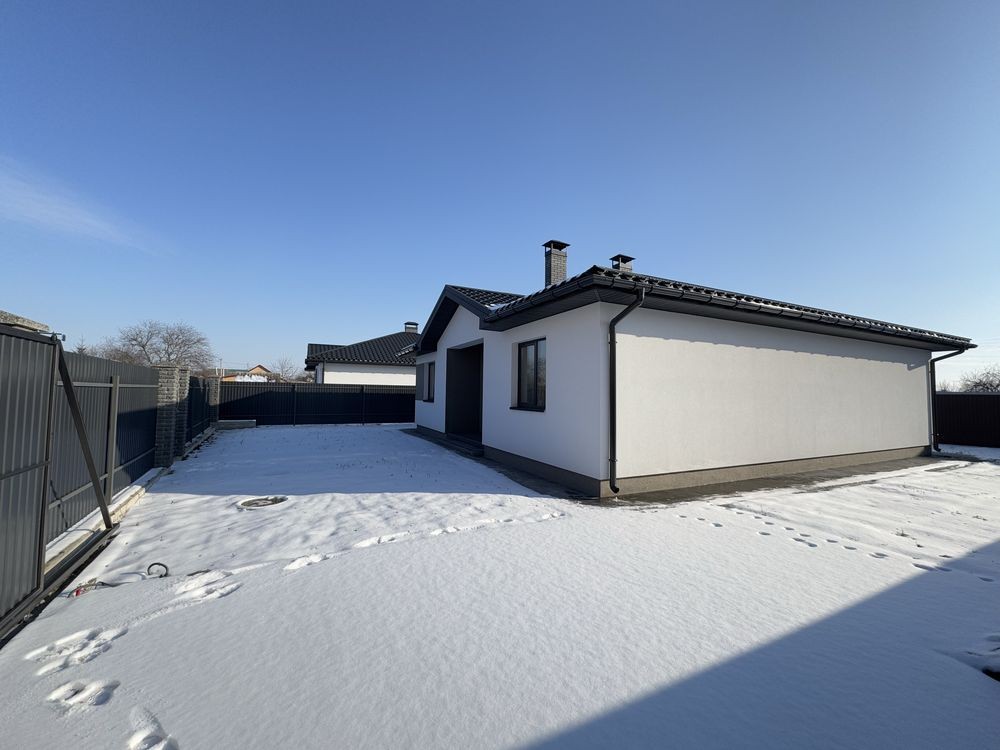 Продається сучасний одноповерховий будинок з якісним ремонтом у спокійному районі Борисполя. Місце дуже зручне для життя — поруч школа, озеро, автобусна зупинка, все необхідне недалеко.