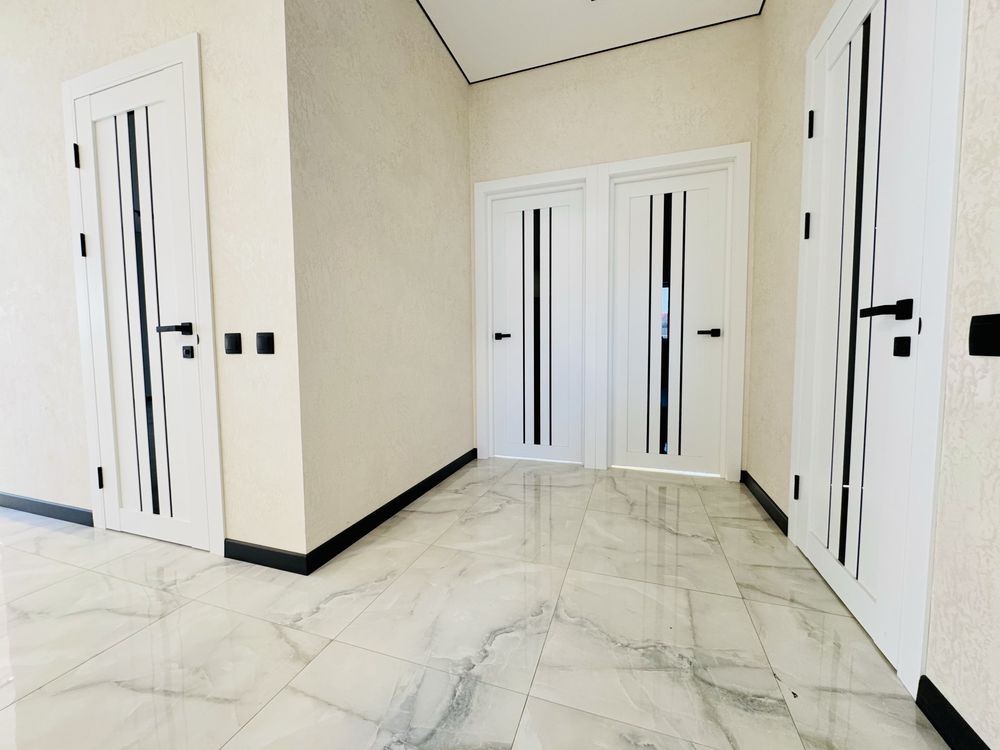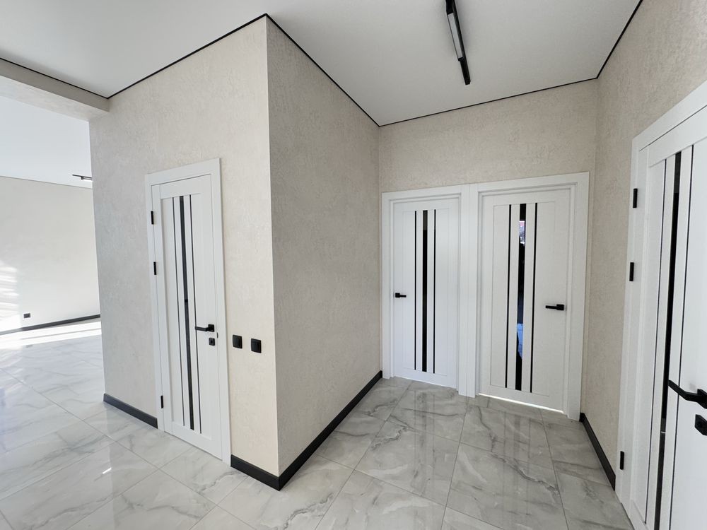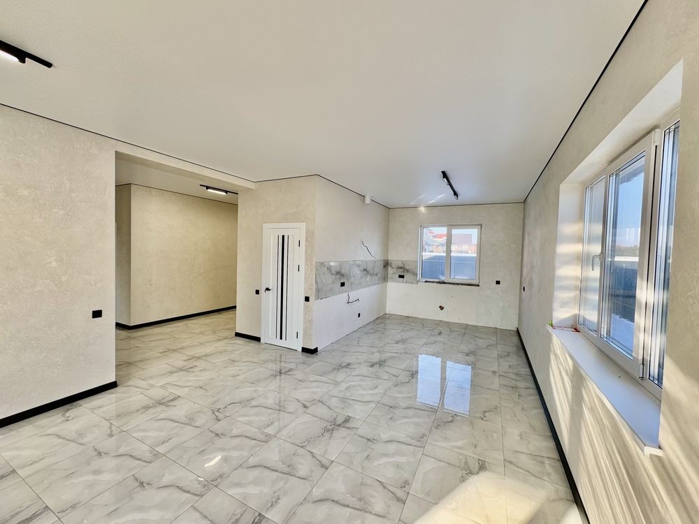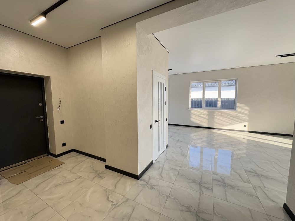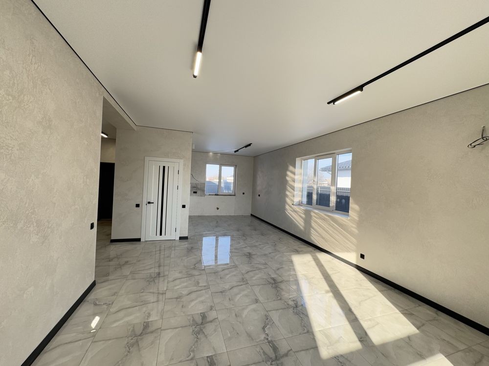 Продається сучасний одноповерховий будинок з якісним ремонтом у спокійному районі Борисполя. Місце дуже зручне для життя — поруч школа, озеро, автобусна зупинка, все необхідне недалеко.