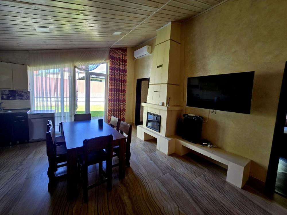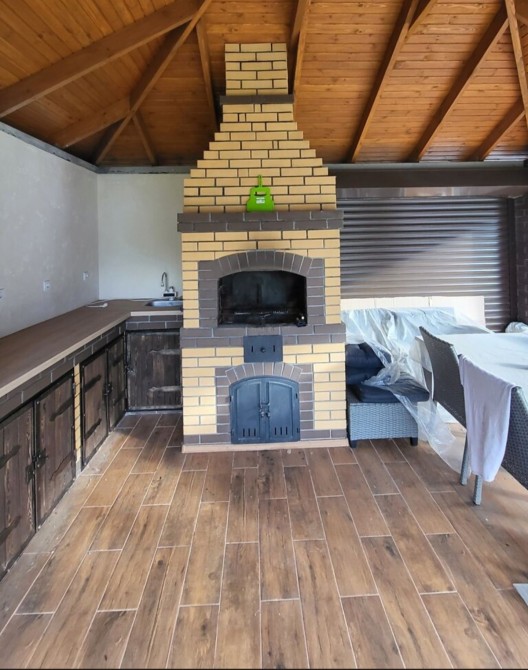 Меблі, техніка, кондиціонер, система охорони з відеонаглядом, камін, генератор, вольєр, велика барбекю зона, піднавіс на два авто.