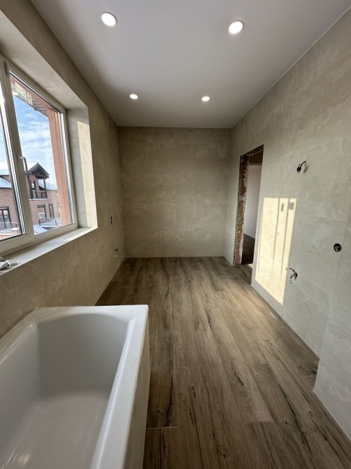 - Зроблено монтаж керамограніту в санвузлах, встановлена ванна.