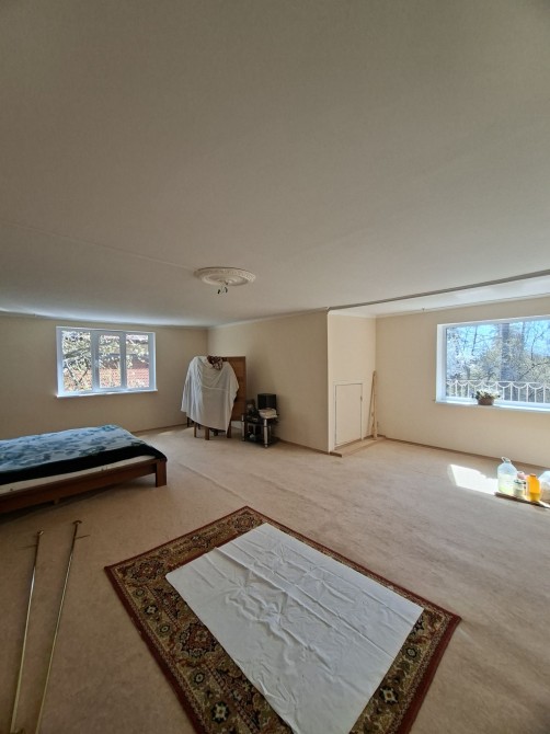 На першому поверсі великий передпокій, санвузол, кухня та чотири житлові кімнати. На другому поверсі коридор та велика кімната 50м.кв із виходом на