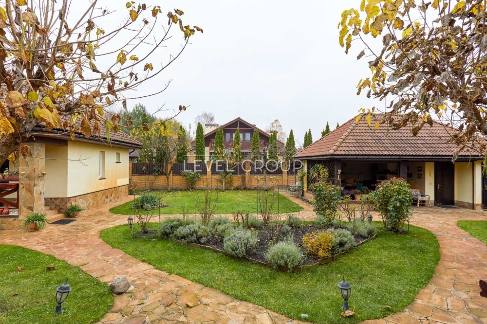 Є гараж та додаткове паркомісце під накриттям, альтанка з зона барбекю та баня.